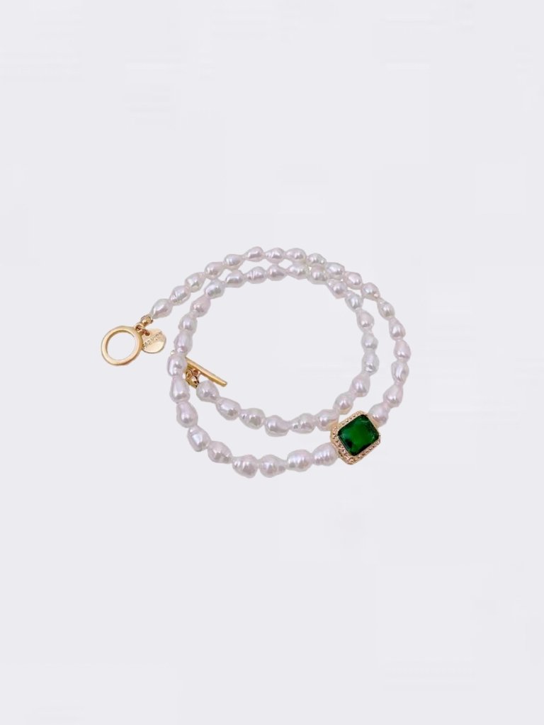 Be the bell of the ball with this necklace! A gorgeous pearl necklace with a large green pendant and a hoop clasp. Pop this necklace on when you’re going to a fancy event, on a dinner date, or when you feel like you need something extra! Product Details & Material PU Hoop closure Product Measurements